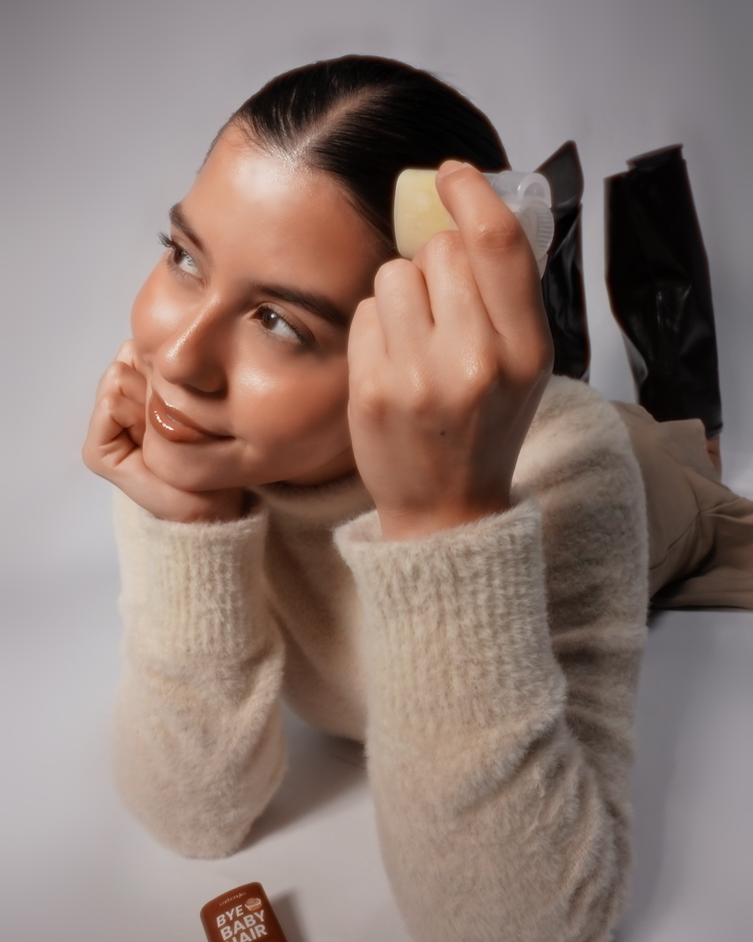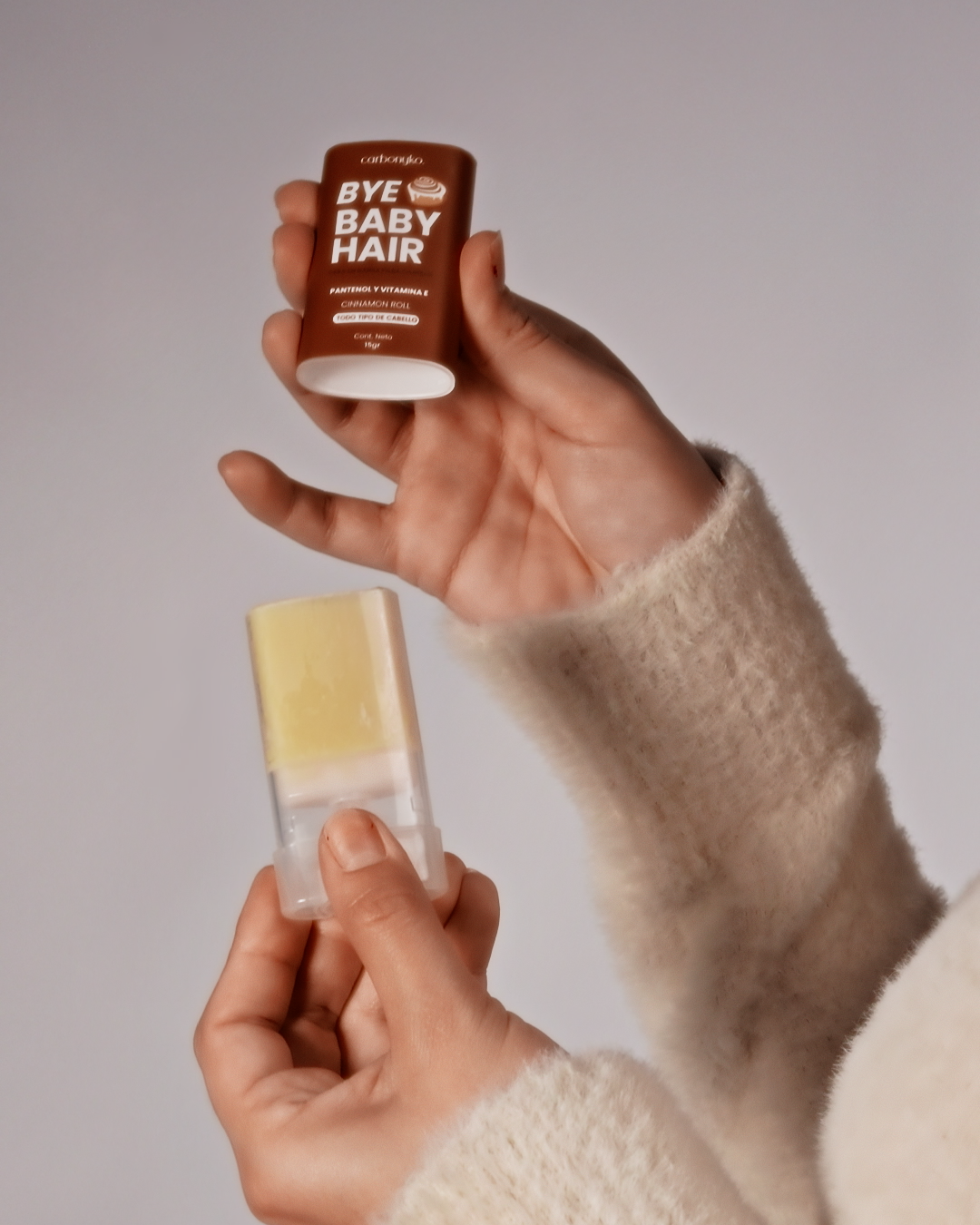 - Aplicar la barra en contacto directo con el cabello y deslizar hacia el lado donde se quiera peinar los “baby hairs”. Después, te puedes ayudar utilizando un cepillo para perfeccionar el peinado.